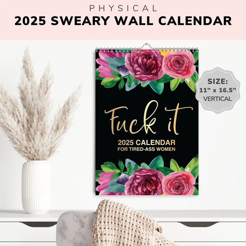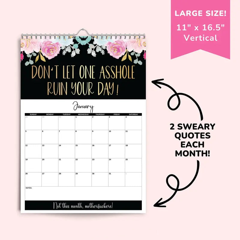 • 😇 This 2025 Wall Hanging Calendar features TWO funny cuss word quotes per month for the year of 2025.