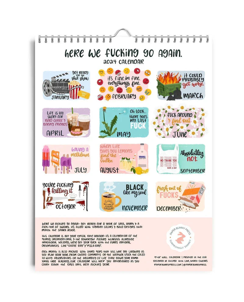 Here we go again, get ready for a year of sass, snark and a fuck-ton of swears. This calendar is fulled with vibrant colors & bold designers that match the snark inside.